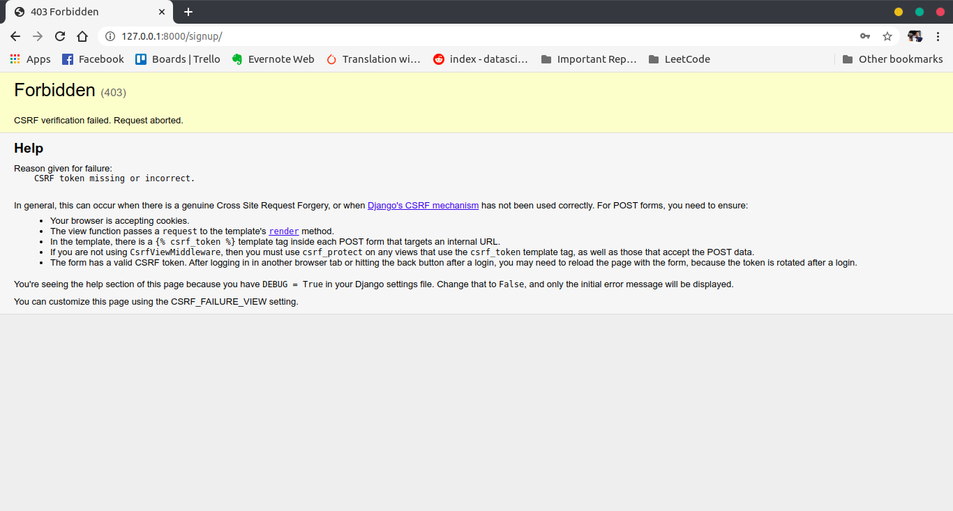 Now we got the error saying CSRF token missing. To fix this error